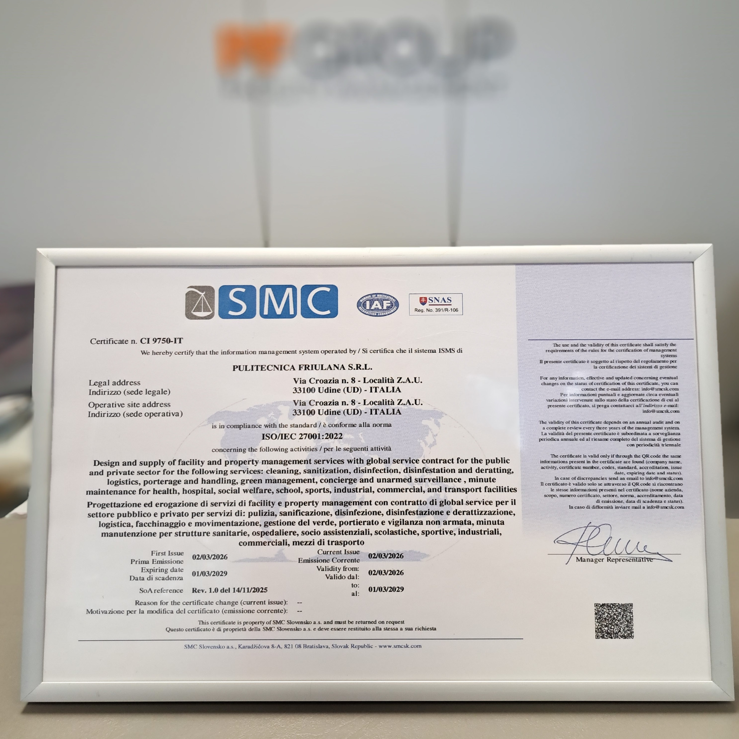 Pulitecnica Friulana, società consorziata di PF Group, ha ottenuto la certificazione ISO/IEC 27001:2022, lo standard internazionale di riferimento per la gestione della sicurezza delle informazioni e della cybersicurezza.